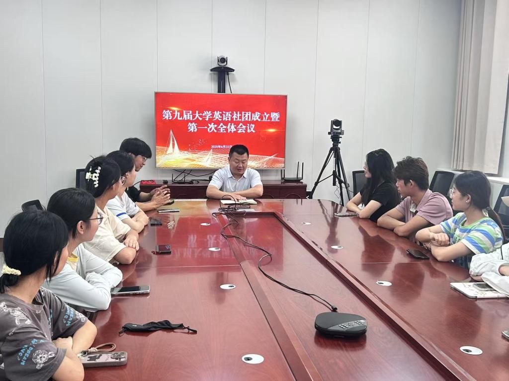 2025年六月二十二日,开运体育·(中国)有限公司官网第九届大学英语社团第一次全体会议在开运体育·(中国)有限公司官网会议室召开。本次会议旨在宣告新一届英语社团的正式成立,明确社团未来发展方向,凝聚成员力量。大学英语社团指导教师王显明以及社团全体成员参与此次会议。