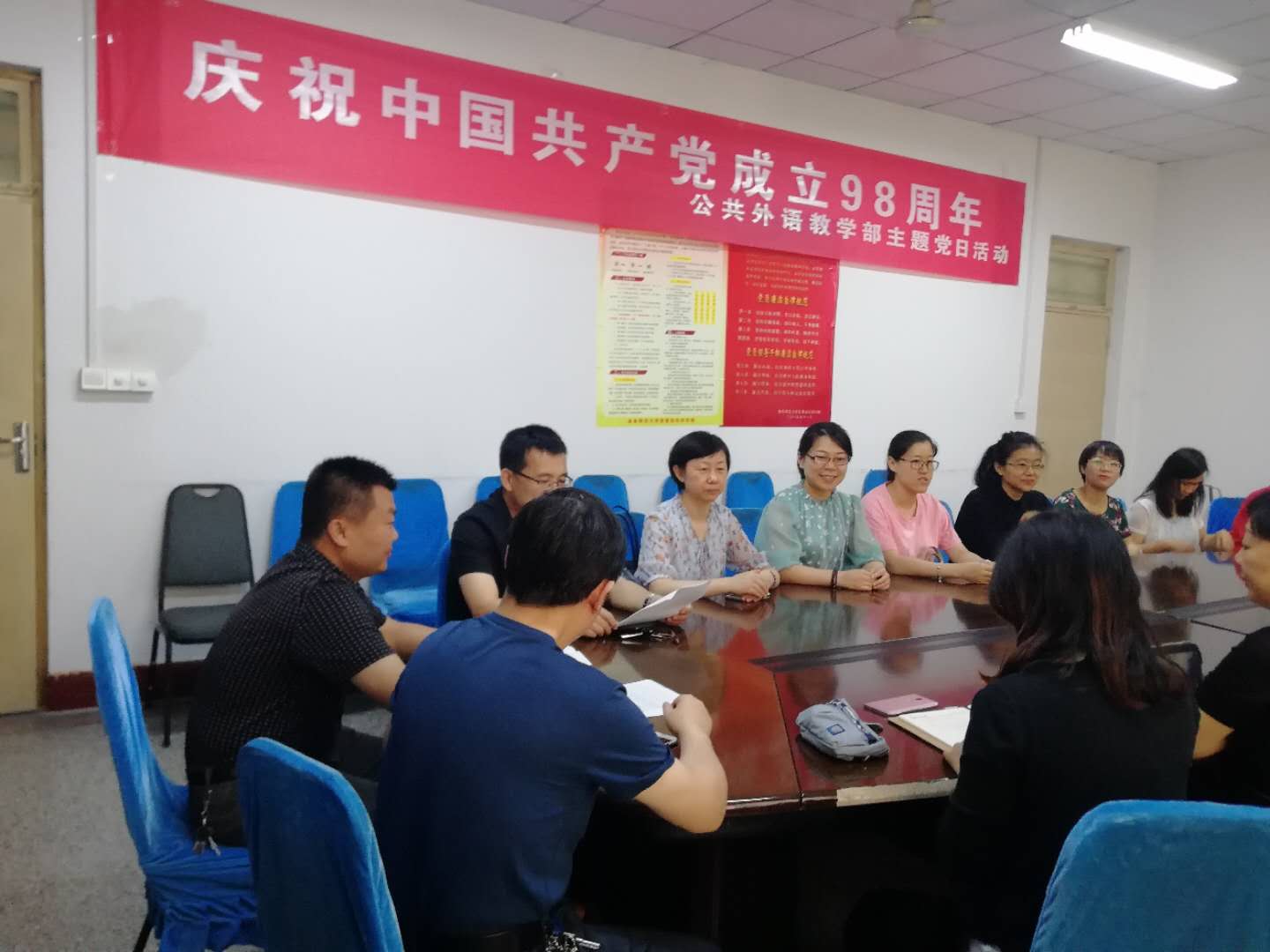 6月26日下午,开运体育·(中国)有限公司官网曲阜校区党支部召开主题党日活动,庆祝中国共产党成立98周年,党日活动由支部书记王广成主持,全体党员参加。会上,王广成带领全体与会党员重温了入党誓词,全体党员认真学习领会了习近平总书记“不忘初心、牢记使命”的理论内涵和实践要求,进一步明确了“守初心、担使命,找差距、抓落实”的总体要求。全体党员面对国旗、党旗,庄严宣誓,重温入党誓词,永葆入党初心。同时,支部副书记刘成干结合实际,围绕“不忘初心、牢记使命”主题带头讲授了党课,要求全体党员、全体教师要坚决维护核心,对党忠诚,聚焦贯彻落实以习近平同志为核心的党中央的各项决策部署和精神,为促进学校大学英语改革发展而担当有为。其次,围绕本次民主生活会,党员同志就发扬民主、教学促进等进行了热烈的讨论。
