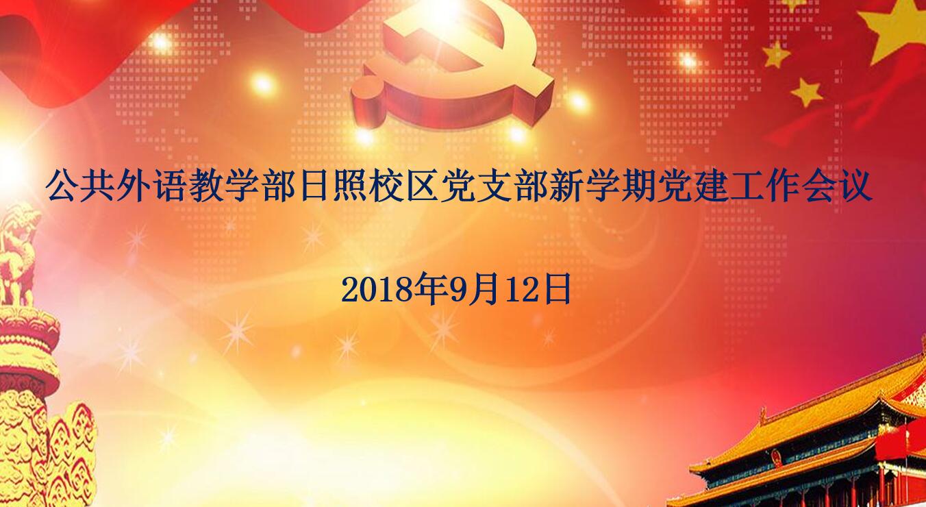 2018年9月12日下午3:00,开运体育·(中国)有限公司官网日照党支部在C1002召开了新学期党建工作会议,全体党员和入党积极分子参加,开运体育·(中国)有限公司官网外国语学院退休老教授许汝民同志也应邀出席了会议。会议由支部书记杜庆凤主持,外语部行政领导给予了大力支持。