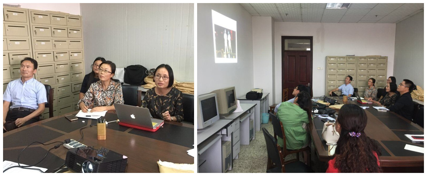 与“大气,又接地气!”、“内容很震撼!”的《辉煌中国》相呼应,也是支部上学期制定的计划,开始“宣传中国传统文化,讲好中国故事”的系列报告。此系列报告宗旨是:“中国梦”、“一带一路”新形势下,努力在我单位承担的大学英语教学中引导学生对我国优秀传统文化精粹进行深度理解和传承,并适时引导学生对国外文化进行辩证思考。针对我党支部工作特色,特邀请我部从事孔子学院中国传统文化宣传的两位党员同志分享经验。分别从美国和加拿大归国的党员曹文文同志和张晓宇同志通过文字、图片、音、视频等丰富方式介绍了她们在国外教授中文、传播中国文化的亲身经历。两位同志在异国他乡积极传播中国传统文化、讲好中国故事的经历显示,随着中国综合国力的不断壮大,中国文化的影响力也在全球日益扩大。