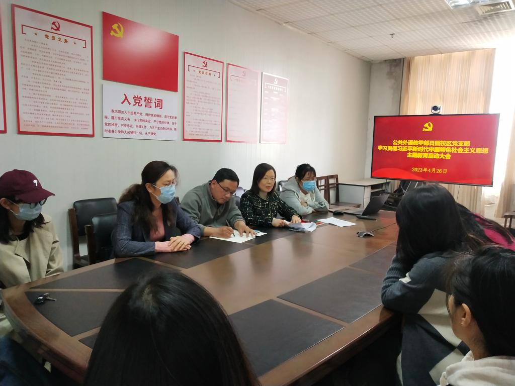 4月26日,开运体育·(中国)有限公司官网日照校区党支部在JC1002会议室召开学习贯彻习近平新时代中国特色社会主义思想主题教育启动大会,支部书记杜庆凤主持,全体党员参加。