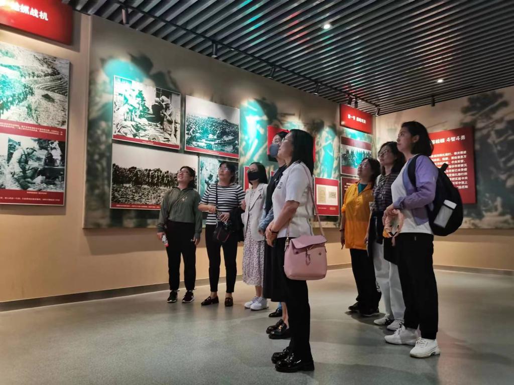 学习活动的第二站是山东沂蒙党性教育基地——沂蒙红嫂纪念馆。“红嫂精神”是沂蒙精神的集中体现,沂蒙红嫂是沂蒙老区女性支持革命、献身革命、无私奉献的群体形象。纪念馆通过众多真实生动的英模事迹,再现了当年沂蒙根据地军民“水乳交融、生死与共”的难忘历史,再现了当年沂蒙人民“最后一口粮当军粮,最后一块布做军装,最后一个儿子送战场”的大爱情怀。在学习现场,党员们依次参观了“红色沂蒙山”展室、“红嫂原型明德英”展室、“沂蒙母亲王换于”展室等各个展室。通过一个个真实生动的英模事迹,深切感受了沂蒙红嫂的无疆大爱,以及我们党、人民军队和老区群众的鱼水情深。