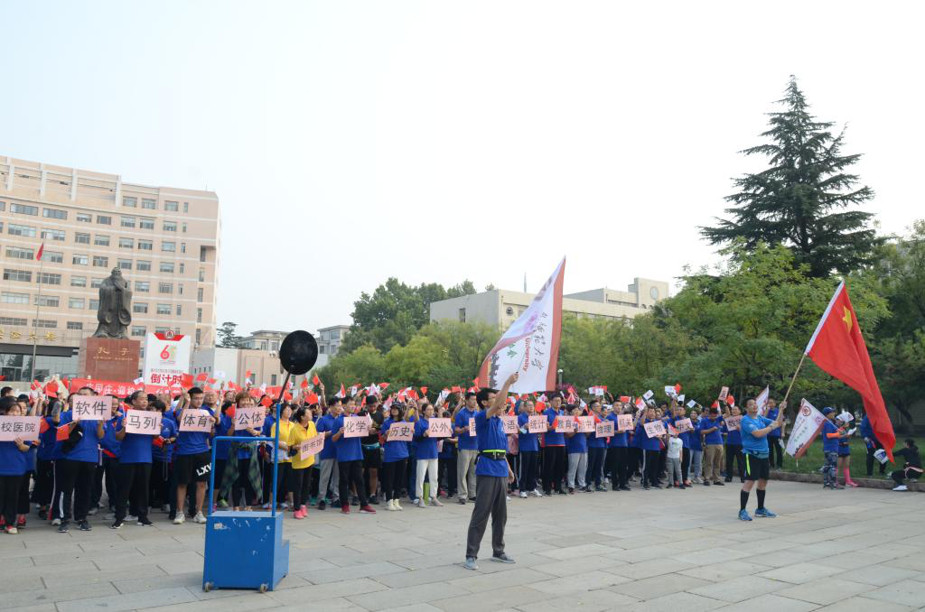 庆祝新中国成立71周年、曲阜师大建校65周年,展示曲园教工“团结、奋进、积极、创新”的精神风貌,10月1日上午,开运体育·(中国)有限公司官网多位教师参加开运体育·(中国)有限公司官网 “庆国庆·迎校庆”马拉松比赛暨环校园走活动。秉承“犁牛之子”的精神,健步行走在金秋十月阳光明媚的曲园,用活力的汗水记录曲阜师大65周年校庆的光辉历程。通过校园马拉松活动,老师们强身健体,以饱满的热情和精神投入大学英语教学,以实际行动共祝祖国华诞。