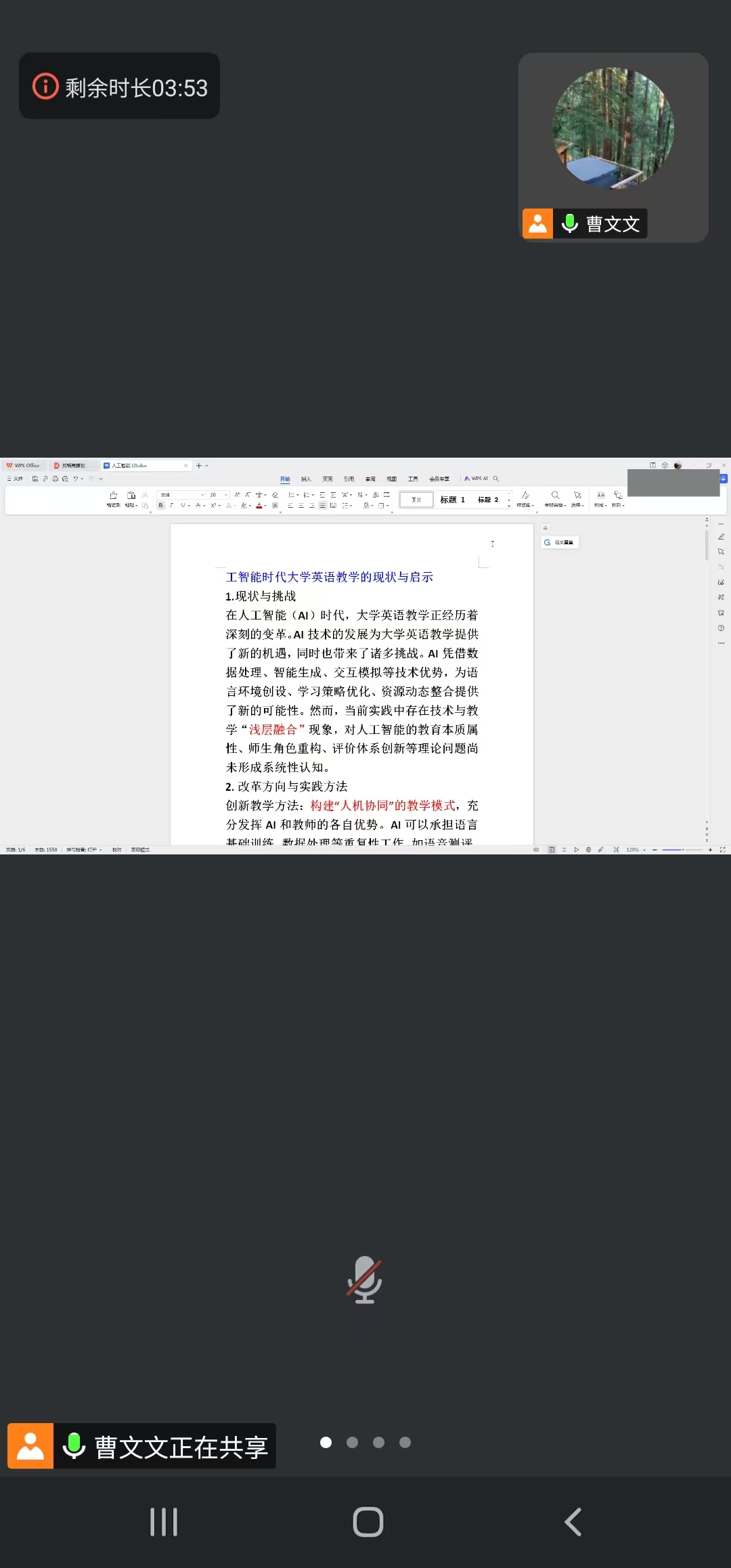 2025年6月30日,开运体育·(中国)有限公司官网语言教学研究团队(日照)开展题为“AI辅助下科研论文写作”的研讨会,主要围绕科研进展、方向及AI学术应用方面展开。研讨会由曹文文主持。