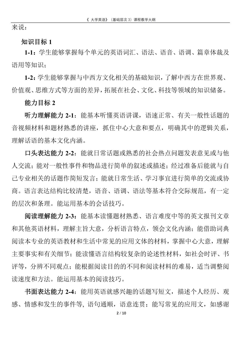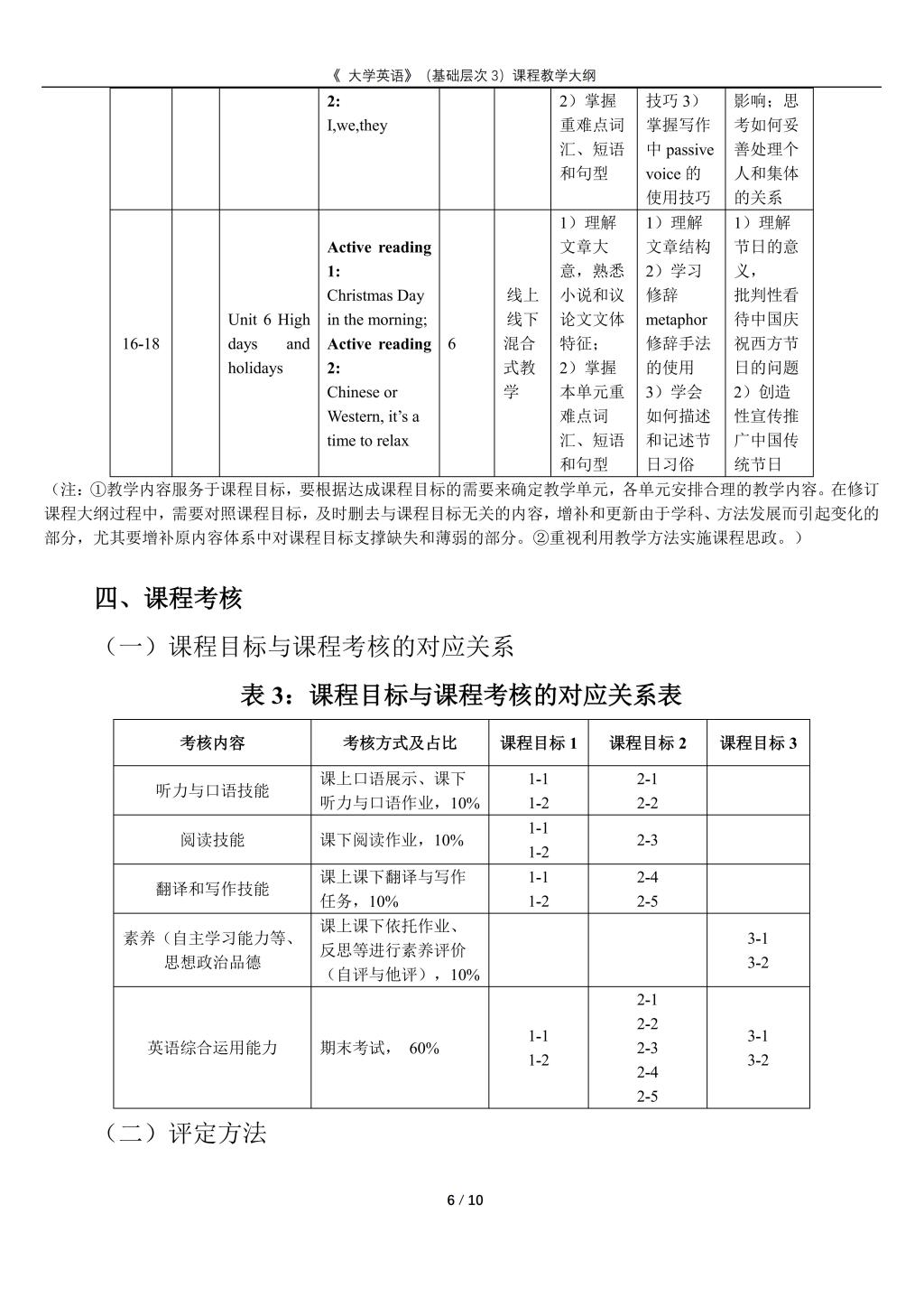 大学英语(普通类基础层次3)课程教学大纲(2022版)