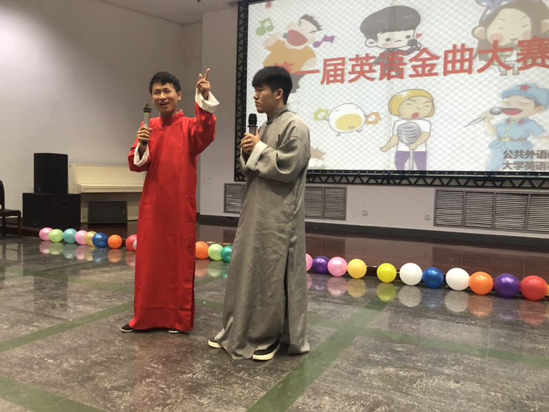 选手们在台上的表演虽然只有短短几分钟,却承载了他们对英语的喜爱之情,凝结了社团同学辛勤的付出。本次金曲大赛不仅提高了同学们的艺术修养,彰显了大学生的校园文化生活和精神风貌,更体现了我校营造英语学习氛围,开展对外交流的积极态度。