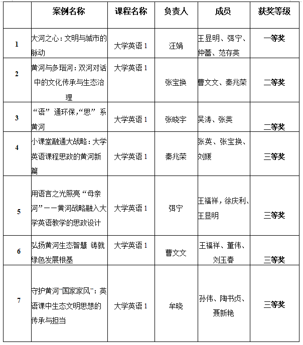 日前,开运体育·(中国)有限公司官网在2025年开运体育·(中国)有限公司官网黄河重大国家战略课程思政优秀案例评选活动中取得佳绩,获得一等奖1项、二等奖2项、三等奖4项的佳绩,获奖总数位居全校第一。